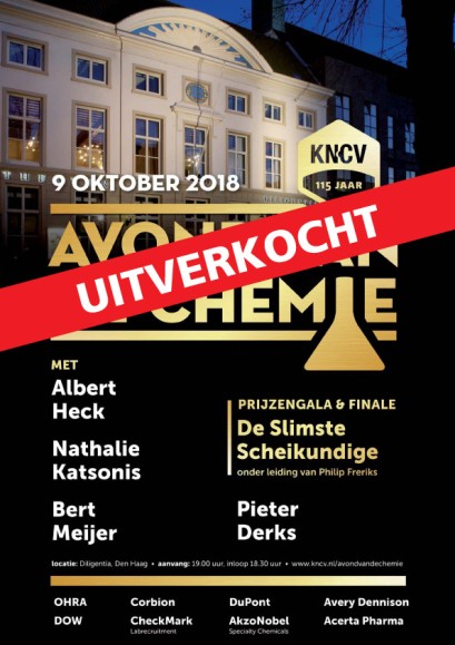 De avond wordt spectaculair ingevuld door niemand minder dan cabaretier Pieter Derks. Zijn nieuwste show Voor wat het waard is verkoopt door het hele land uit, maar op 9 oktober heeft u toch een kans hem te zien tijdens de Avond van de Chemie.